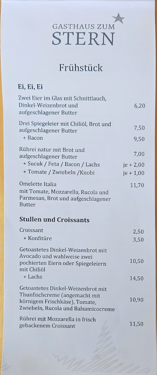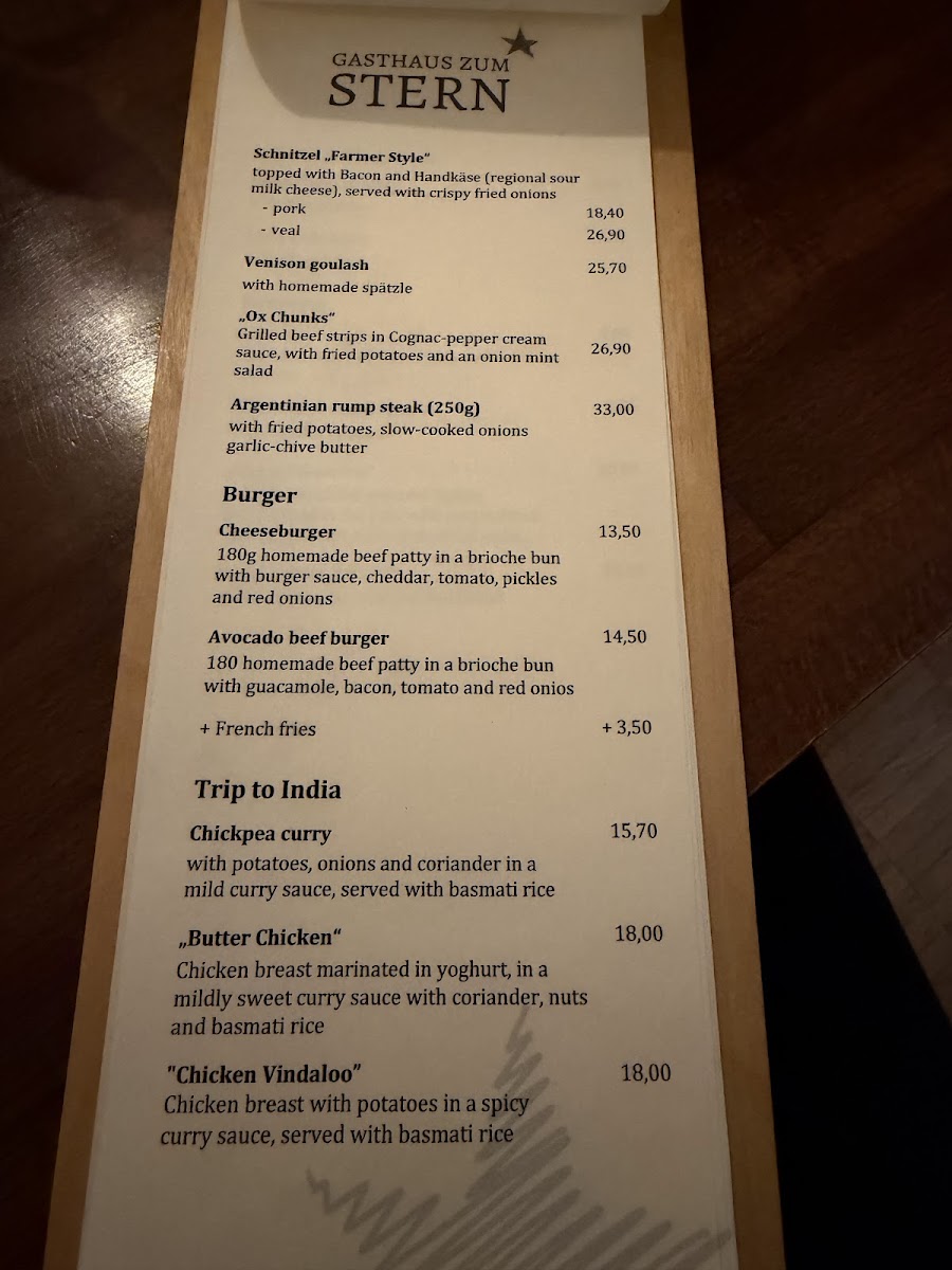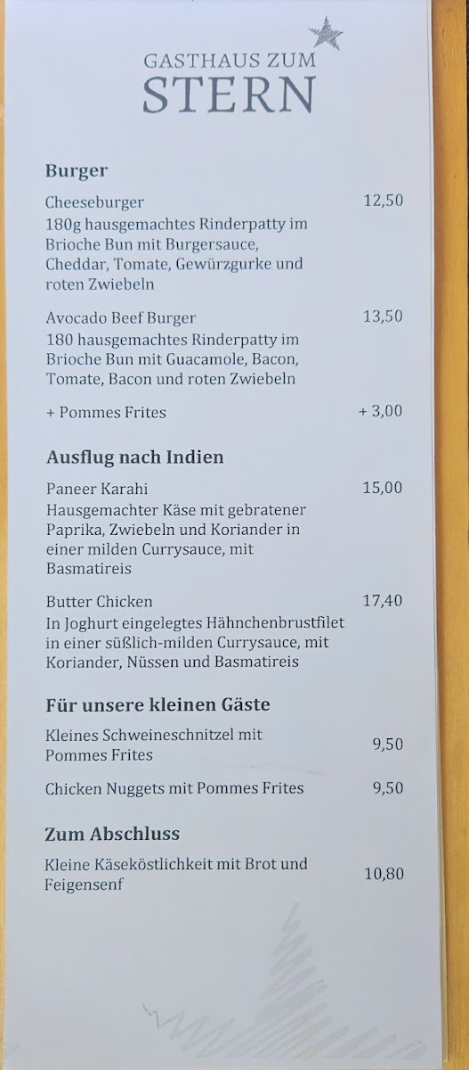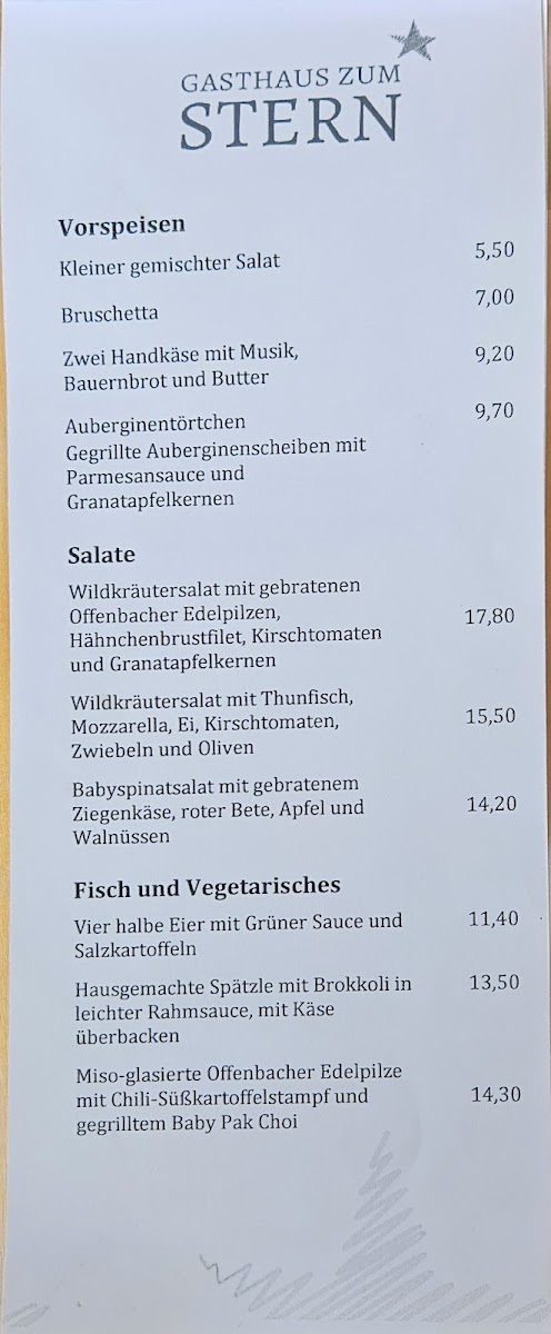 This diverse and well-rounded menu at Gasthaus Zum Stern reflects the heart of German cuisine, with dishes that range from hearty mains to lighter, flavorful options. Whether you're in the mood for a classic schnitzel or a seasonal dish, there's something to satisfy every palate at this charming restaurant.