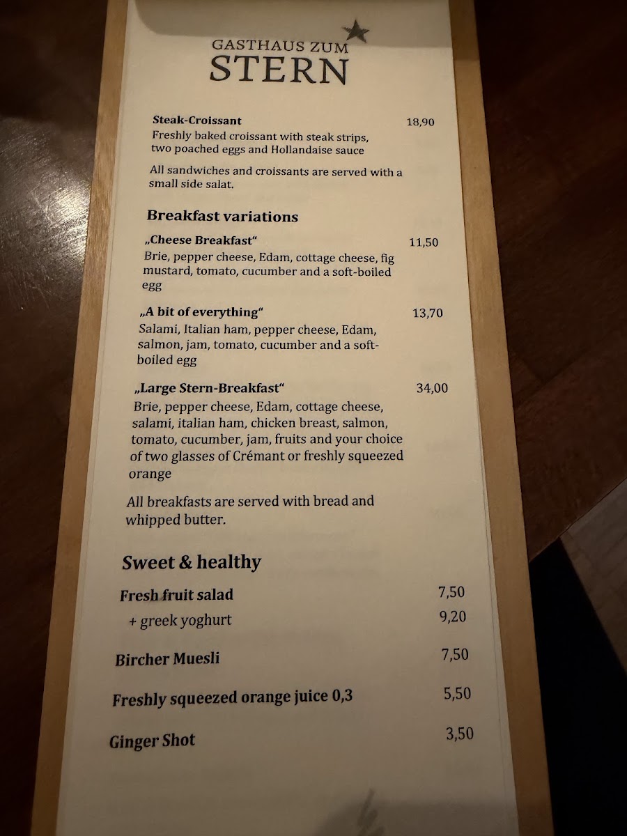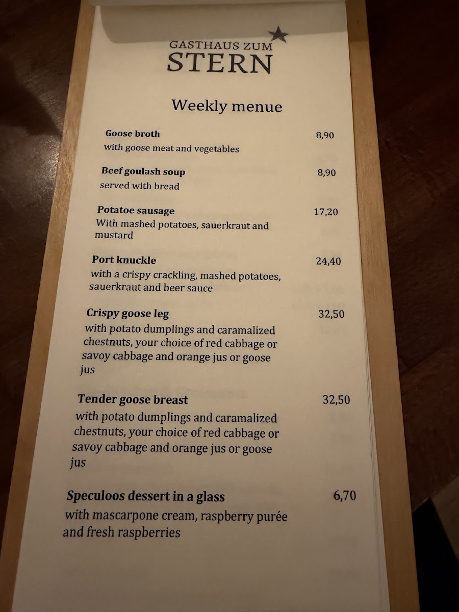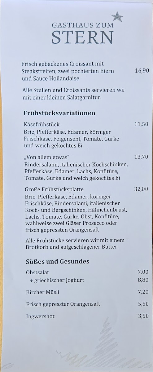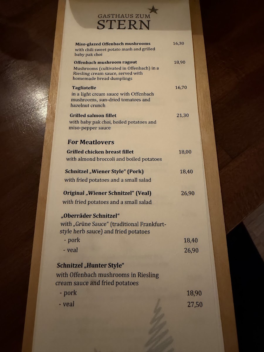 This diverse and well-rounded menu at Gasthaus Zum Stern reflects the heart of German cuisine, with dishes that range from hearty mains to lighter, flavorful options. Whether you're in the mood for a classic schnitzel or a seasonal dish, there's something to satisfy every palate at this charming restaurant.